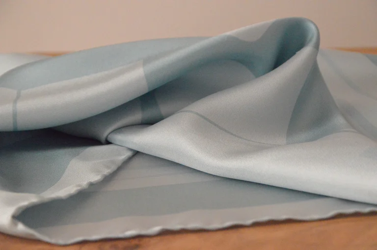 The silk scarf Cielain a delicate Winter Sky blue tone, it is crafted from the finest silk twill sourced from the shores of Lake Como. Designed in our atelier, its serene hue evokes the tranquil beauty of a clear winter’s day. The scarf has been designed in our atelier and hand-finished.