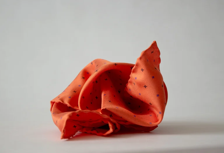 Presentamos nuestro lujoso pañuelo de bolsillo de seda con un fondo naranja intenso que irradia vibrancia y elegancia. Perfecto para quienes aprecian accesorios únicos y refinados, este pañuelo es una pieza destacada en cualquier guardarropa.